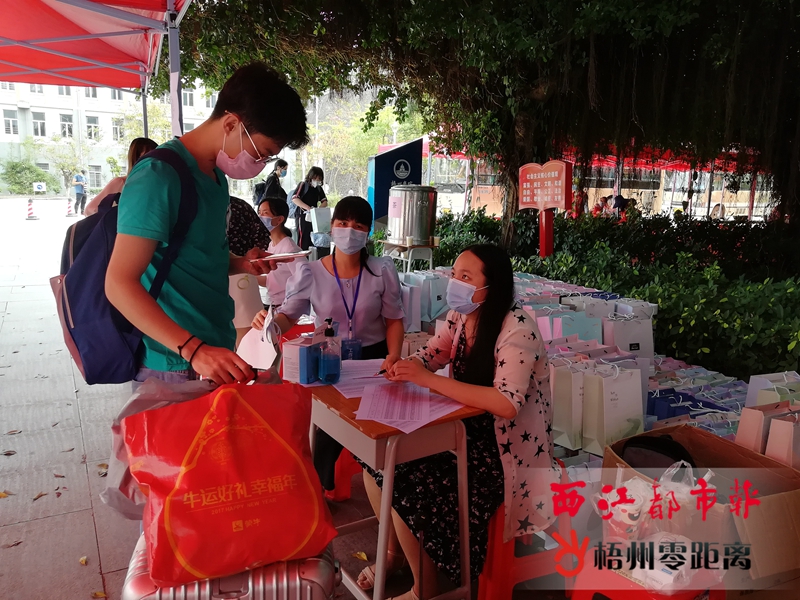梧州零距離網-西江都市報訊(記者 朱元冬 通訊員 陳丹 鄭文鋒)繼大四畢業班學生已先行返校復課后,5月8日,梧州學院迎來了近2000名大三學生返校復課。對此,學院在食堂就餐、宿舍管理、教室配置等方面做足準備,確保學生的身體健康安全。 當天,學院派出多臺車輛前往梧州南站、梧州火車站、金暉汽車站等交通站場,分批次接學生返校。記者在學院體育館前廣場看到,學生們戴著口罩依次下車接受體溫檢測,同時,有工作人員對學生的行李物品等進行消毒。隨后,學生們來到各自院系的帳篷里報到,并領取一份禮袋,禮袋里裝有五個口罩、疫情防控及心理調適知識手冊等物品。回到宿舍后,學生們開始整理內務,將宿舍打掃干凈。而到食堂就餐時,學生們按照地面一米間距的標識排隊領餐,并在食堂里以單人單桌、統一朝向的方式就餐。