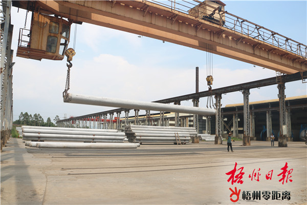 5月10日,在藤縣富華管樁廠,工人正在起吊管樁準備外運。目前,藤縣各企業加快復工復產步伐,開足馬力生產。據統計,今年一季度,藤縣第一產業增加值同比增長0.7%,規上工業總產值同比增長1.6%,財政收入同比增長4%。 黃群禮 攝