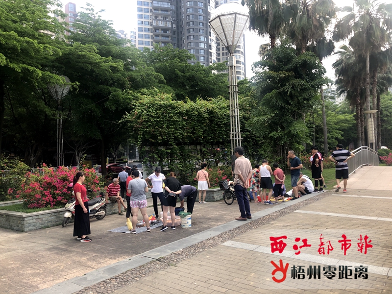 梧州零距離網-西江都市報訊(記者 謝韻)春來賞花,夏日納涼。西堤公園一直是梧州人休閑娛樂的好場所,然而近日有市民反映,一些魚販在西堤公園內的空地上擺攤賣魚,并現場宰魚。5月20日上午,針對市民反映的問題,大塘“街長制”團隊迅速組織有關部門對亂擺賣行為進行整治。 魚販占用公園空地賣魚 “老板,這魚怎么賣?”“老板,我要這兩條,幫我清理一下魚內臟。”20日上午7時許,在卡地亞小區對出的西堤公園小空地上,臨時擺賣的兩個魚檔生意紅火。不少在西堤公園晨練的市民都圍在魚檔周圍,像在菜市場買菜般挑選魚類,并讓魚販現場宰殺。