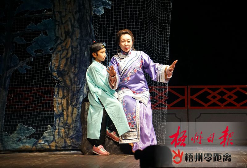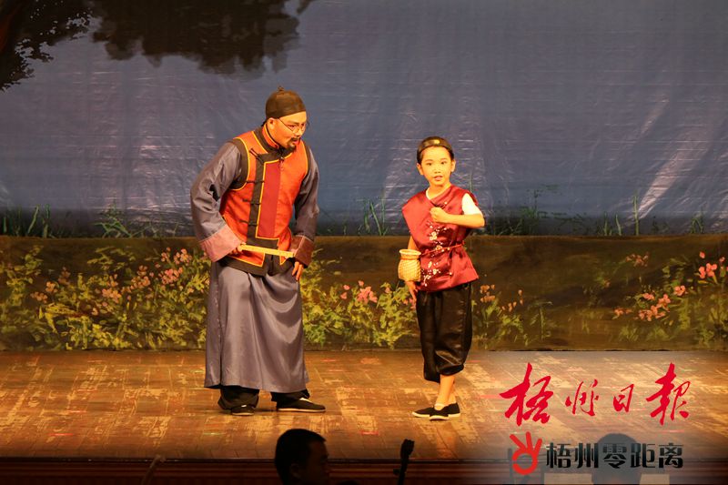 微型粵劇讓觀眾耳目一新。黃英杰 攝 經(jīng)過(guò)近一個(gè)月的不斷調(diào)整劇本內(nèi)容,以及加緊排練,第一季第一集的微粵劇——《子村樹(shù)下夢(mèng)親人》于5月22日在市藝術(shù)劇院首演。這一集講述李濟(jì)深從桂林辭官回梧,在經(jīng)過(guò)其母親娘家所在的子村村口一棵大樹(shù)下休息時(shí),他做夢(mèng)夢(mèng)見(jiàn)了自己的親人們,回想起他小時(shí)候就立志要救國(guó)愛(ài)民的故事。這一新穎的微粵劇以它獨(dú)特的風(fēng)格呈現(xiàn)在我們眼前。