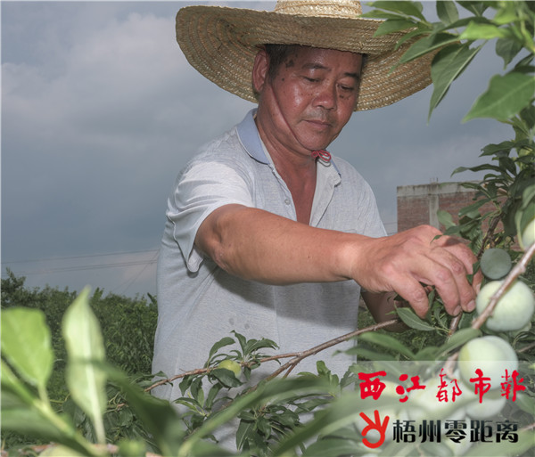 5月29日,在岑溪市糯垌鎮(zhèn)綠云村,果農(nóng)龔澤文正在采摘三華李。記者 楊揚 攝 “這個品種的三華李入口爽脆、甜酸適度、果大核小,很受消費者的青睞?!饼彎晌臉泛呛堑卣f,三華李投資成本較低,管護簡單,掛果期較短,收益快,他家已經(jīng)種植三華李三年多了,如今共種植了5畝三華李,畝產(chǎn)達500多公斤,每公斤批發(fā)價6元至10元不等,預計今年銷售三華李的收入可達3萬元。 同樣在綠云村,村民朱肇峰家里飄著的,是珍珠番石榴的清香。5月29日中午,朱肇峰還忙著在自家果園里檢查珍珠番石榴套袋的情況。他家的果園里種植了35畝珍珠番石榴,共有2500棵果樹,珍珠番石榴一年四季都可以掛果,受天氣影響不大,只要管護得好,一棵樹一年可以產(chǎn)出約800公斤珍珠番石榴,周邊不少村民、果商都“聞香”尋到朱肇峰的果園里采摘購買。“基本通過果園直銷就能打開銷路。有時候我還會載著果子到批發(fā)市場銷售,也是很快就銷售一空。”朱肇峰說道。 說起綠云村的特色農(nóng)產(chǎn)品種植,糯垌鎮(zhèn)副鎮(zhèn)長覃浩桓表示,綠云村位置優(yōu)越、交通便利,有豐富肥沃的土地資源,優(yōu)質(zhì)的水資源,適合發(fā)展水果種植產(chǎn)業(yè)。目前,村里種植有三華李800畝、砂糖橘780畝、芒果110畝等。除了種植面積較廣的水果外,還有不少農(nóng)戶散種番石榴、百香果、水蜜桃等。村里積極為果農(nóng)搭建平臺,通過引流客商收購、電商快遞銷售、游客游園采摘等方式,幫助果農(nóng)打開了銷售渠道。 目前,綠云村在現(xiàn)有產(chǎn)業(yè)的基礎(chǔ)上,引進龍頭企業(yè),發(fā)展建設六大現(xiàn)代特色農(nóng)業(yè)種植基地,進一步豐富“甜蜜”水果產(chǎn)業(yè)。村里正在打造的就包括800畝泰國紅寶石蜜柚種植基地、800畝木瓜蜜丁種植基地、300畝紅心火龍果種植基地、100畝臺灣鳳梨種植基地、改良400畝龍眼種植基地、500畝優(yōu)質(zhì)綠色有機水稻種植基地。村里還將支持企業(yè)開展特色農(nóng)產(chǎn)品網(wǎng)上營銷和精深加工,形成一、二、三產(chǎn)業(yè)聯(lián)動,同步加強農(nóng)業(yè)基礎(chǔ)設施建設,實施高標準農(nóng)田建設、農(nóng)產(chǎn)品倉儲冷鏈、高效節(jié)水灌溉等項目,推動產(chǎn)業(yè)興旺,促進農(nóng)民增收。