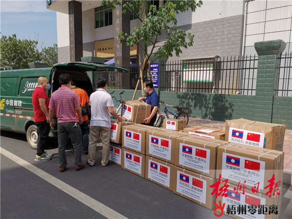 5月19日,老撾川壙省的醫療機構舉辦交接儀式接收防疫物資。(圖片由市衛健委提供) 疫情無情人有情,我市的愛心物資穿越千山萬水,到達友好城市老撾川壙省,支援當地抗擊疫情。在共同應對疫情過程中,梧州和老撾川壙省的醫務人員深化了友誼、增進了互信。 全力籌措防疫同心 “王老師,您好!您回到梧州了嗎?我在報紙看到您去武漢了。”4月23日,市中醫醫院外二科主任王展福收到來自老撾的問候,發來信息的是老撾川壙省的博旺醫生。 2015年11月,梧州市與老撾川壙省正式締結友好城市關系。由于老撾蛇傷病人多,但蛇傷專科臨床醫生較少,2019年7月,在梧州市外事辦和老撾川壙省外事廳的共同推動下,老撾川壙省選派醫生到梧州市中醫醫院參加為期三個月的“一帶一路”東南亞蛇傷專科醫師培訓班項目,加強蛇傷醫學人才的交流培養,增進友好城市的友誼與務實合作。王展福是項目的具體負責人,與4名老撾醫務人員建立了深厚的友誼。 博旺就是當時來梧進修的四名醫生之一。在進修結束后,博旺把在梧州學到的常見毒蛇咬傷診療技術帶回老撾,為當地民眾提供及時有效的蛇傷診療服務,收到了良好的效果。中文很好的他也一直和市中醫醫院的專家保持聯系,交流業務。 今年2月,王展福成為梧州第四批援鄂醫療隊隊長,赴武漢支援抗疫。4月15日,他回到梧州。 在與博旺的交流中,王展福得知老撾川壙省缺乏口罩等新冠肺炎防控物資,于是,他立即向醫院領導反映情況。作為市中醫醫療集團龍頭單位的市中醫醫院迅速反應,籌備防控物資支援老撾。 “我們現在松緩一點,老撾抗疫前方緊張一點,竭盡我們所能幫幫他們。”市中醫醫療集團負責人、市中醫醫院院長梁平與該院設備科的工作人員清點盤算庫存防控物資,準備捐贈物資。他們還另外采購了一批醫用防護服、紅外線體溫槍、醫用防護眼鏡等物資,并將有關情況向市衛健委作了匯報。 市衛健委了解情況后,立即和中恒集團溝通。得知是為梧州友好城市老撾川壙省開展新冠肺炎疫情防控后,中恒集團高度重視,組織一線生產人員加班加點、開足馬力發展生產,經過全方位檢測后,第一時間生產并捐贈出2萬個醫用口罩支援老撾疫情防控。 千里馳援守望相助 “你們能往國外寄遞防疫物資嗎?我們有一批援助物資需要緊急郵寄到老撾。”4月28日下午,市中醫醫療集團的工作人員抱著試一試的心態,匆匆打通了中國郵政集團有限公司梧州市分公司的電話。在完成物資的籌備后,市中醫醫療集團立即開始尋找能郵寄的渠道,但是由于當時疫情影響,國際寄遞形勢嚴峻,他們尋找多家快遞公司均答復不接此業務。 在接到市中醫醫療集團援助老撾防控物資的快遞寄送需求后,中國郵政集團有限公司梧州市分公司副總經理沈江既興奮又發愁,興奮的是作為國有企業,承擔社會責任,參與到這么一件有愛心、有意義的事,但同時愁的是新冠肺炎疫情影響下,全球運力緊張,很多國際航班停航,要寄送防疫物資必須沖破重重阻力。任務重、時間緊,該公司立即成立項目保障專項小組,安排業務骨干李海賓、吳俊杰、許力生作為小組成員,進行詳細安排部署,要盡一切力量將國際援助物資寄達目的地。 為了順利完成郵寄任務,中國郵政集團有限公司梧州市分公司立即向上級公司匯報、協調,項目保障專項小組當晚加班加點,研究、協調最合理的運輸方式和路線。專項小組共做了三個方案,其中從南寧空運和專機運送的方案均行不通,最終采取了第三個方案,由云南口岸出口走陸路到達老撾。“為了協調貨物運輸,我們打了差不多100個電話。”吳俊杰回憶說。 物資運送刻不容緩,確定線路后,4月29日上午,項目保障專項小組立即到市中醫醫院開展驗貨、封裝、物流對接的現場操作,并對貨物的擺放、堆位花了功夫,最終順利發出物資。由于貨物有17件之多,預計要通過3個批次才能到達。“按照計劃,5月底才能到達,意想不到的是貨物提前順利到達,而且是一個批次同時到達。”許力生回憶時開心地說。