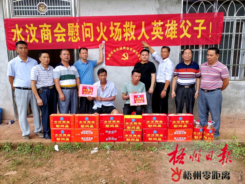 6月3日,岑溪市水汶商會慰問陸義、陸賢父子。廖之立 攝 |