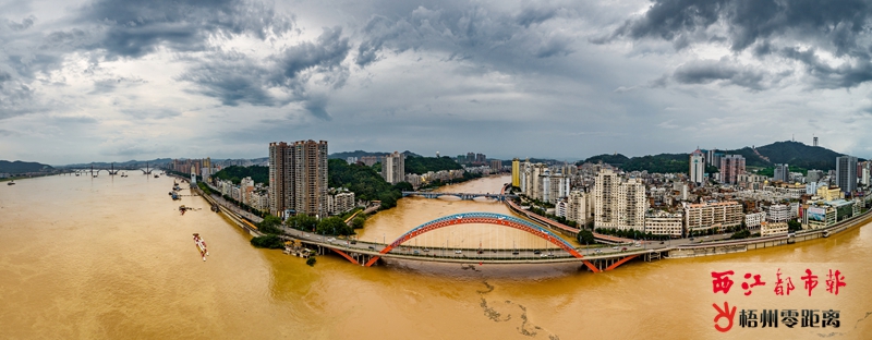 受強降雨及上游來水影響,桂江、西江河水水位暴漲,6月8日15時10分,桂江京南水文站出現30.13米的洪峰水位。梧州市氣象部門預計未來兩天全市仍有強降雨并伴有短時雷暴大風等強對流天氣。