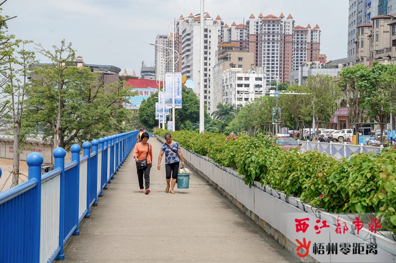 6月10日,在萬秀區云龍大橋北橋頭人行道,護欄刷上藍白相間的新漆,寶巾花在靠近行車道一側開放。