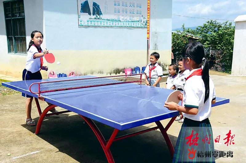 愛心人士捐贈了新乒乓球桌給孩子們,大家開心地打起乒乓球。