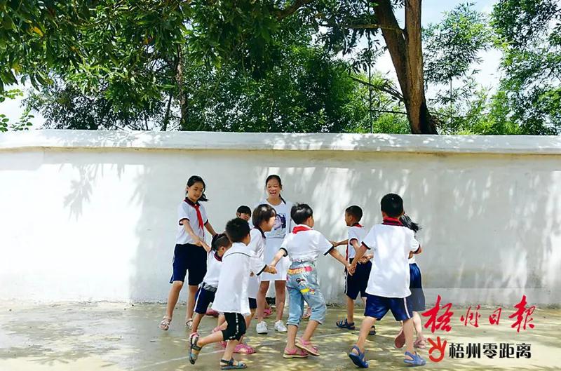 課余時間,李文娟開心地和學(xué)生一起玩耍。