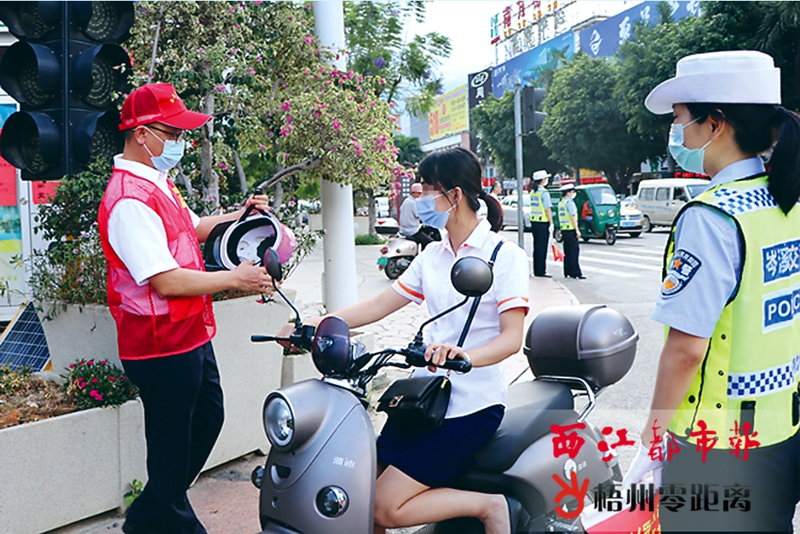 近日,為引導市民養成文明出行習慣,岑溪市公安局交通管理大隊聯合相關單位開展文明交通勸導活動。交警和志愿者們共同走上街頭,對駕駛員或行人的不文明行為進行勸導。其間,結合“一盔一帶”宣傳,交警和志愿者們還通過向摩托車、電動車駕駛員發放宣傳資料、贈送頭盔等方式,號召市民自覺遵守交通法規,安全出行。(李娟紅 羅一峻 攝影報道)
