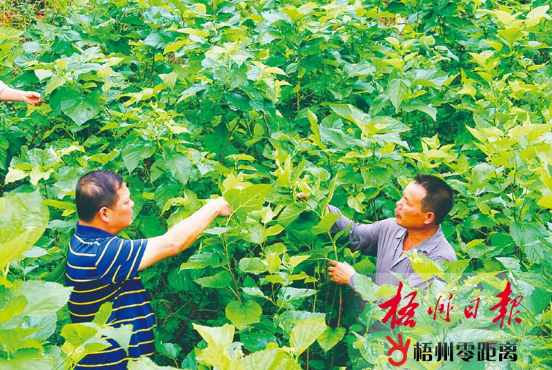 6月18日,蒙山縣西河鎮(zhèn)水秀村駐村第一書(shū)記曾建忠(左)與貧困戶(hù)何東光在桑園共同研究種桑養(yǎng)蠶的新技術(shù)。今年,水秀村上山三組貧困戶(hù)何東光擴(kuò)種桑園兩畝多。曾建忠經(jīng)常向何東光提供種桑養(yǎng)蠶的信息和技術(shù),不斷提高何東光種桑養(yǎng)蠶的水平。 江永錄 攝