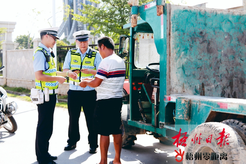 梧州零距離網-梧州日報訊 為有效預防和遏制道路交通事故的發生,進一步規范轄區道路交通秩序,全力創造良好的交通環境,市公安局交警支隊緊緊圍繞市委、市政府的工作要求,開展百日攻堅整治行動。 6月20日以來,市公安局持續開展了4場“四城聯創百日攻堅行動”之百警突擊行動,以定點檢查與機動巡查相結合的方式,在全市設立多個檢查點,強力整治交通秩序,引導車輛在規定車道行駛,重點對摩托車、電動車等兩輪車無牌無證、酒后駕駛,逆向行駛、違法載人、超員、不戴安全頭盔、非法安裝雨篷,涉牌涉證、非法改裝等違法行為進行嚴厲查處,形成高壓整治態勢。同時,在整治過程中通過嚴格執法與普法教育相結合的方式,在嚴格處罰的同時現場向違法駕乘人員宣傳道路交通安全法律法規知識,教育駕乘人員要自覺遵守交通法律法規,增強交通安全意識。此外,為鞏固“集中行動,專項整治”成效,交警支隊會同農機部門繼續深入推進轄區內農用拖拉機專項整治行動,多舉措按下拖拉機問題頑瘴痼疾的“暫停健”、“刪除鍵”,確保問題清單歸零。一是壓實責任控源頭。安排專人抓落實,認真清查核實逾期未報廢、長期脫檢、無交強險等拖拉機檔案,依法注銷問題拖拉機,從源頭上嚴控拖拉機問題頑瘴痼疾;二是重心下沉抓整治。在城鄉結合部、集貿市場等農機交通事故易發及拖拉機頑瘴痼疾“露頭”路段場所,嚴格查處拖拉機無牌無證上路行駛、非法載人、超載混載、拼裝改裝等違法行為,形成路面整治的高壓態勢。三是加強法律法規和政策宣。開展多功能拖拉機安全監管警示教育,有效提升農機駕駛員的法律和安全意識。