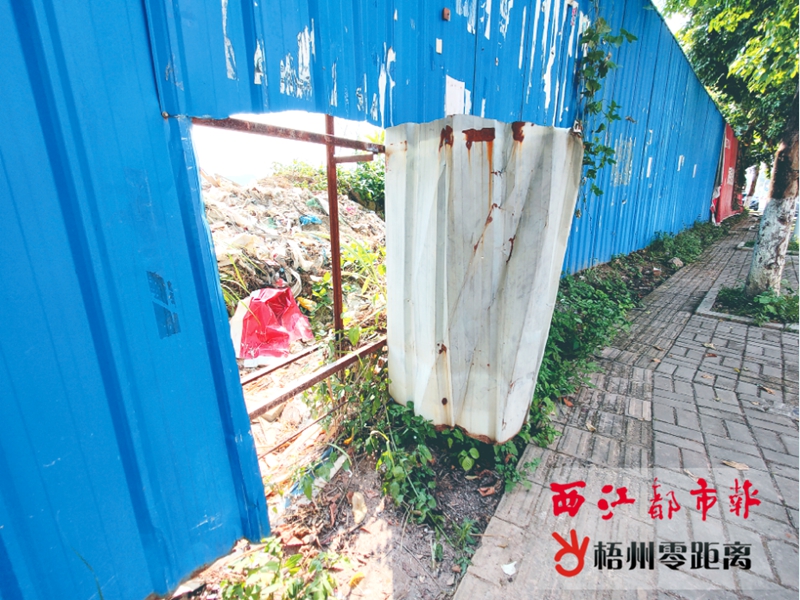 15時30分許,長紅小學對面人行道上的工地鐵皮圍擋被打開了一道口子,存在安全隱患。陳凡 攝