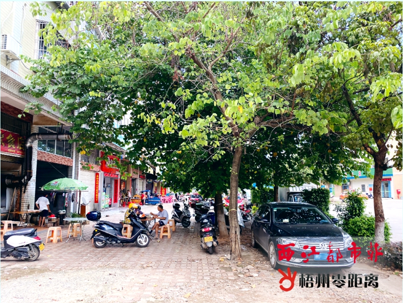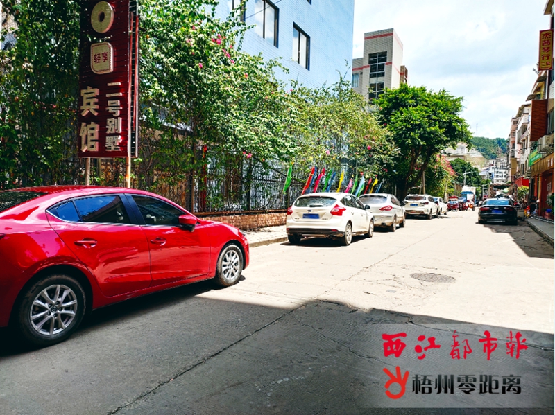 11時許,多臺車輛在梧州市審計局后方的道路上亂停亂放。蒙敏瑩 攝 此外,鄉鎮道路環境也有待改善。在長洲鎮橋底飯店對出路段,一些車輛在此處亂停亂放,路面上堆積著大量泥塵。而在倒水鎮龍泉路及省道323倒水鎮沿線,也存在占道經營和車輛亂停的情況。