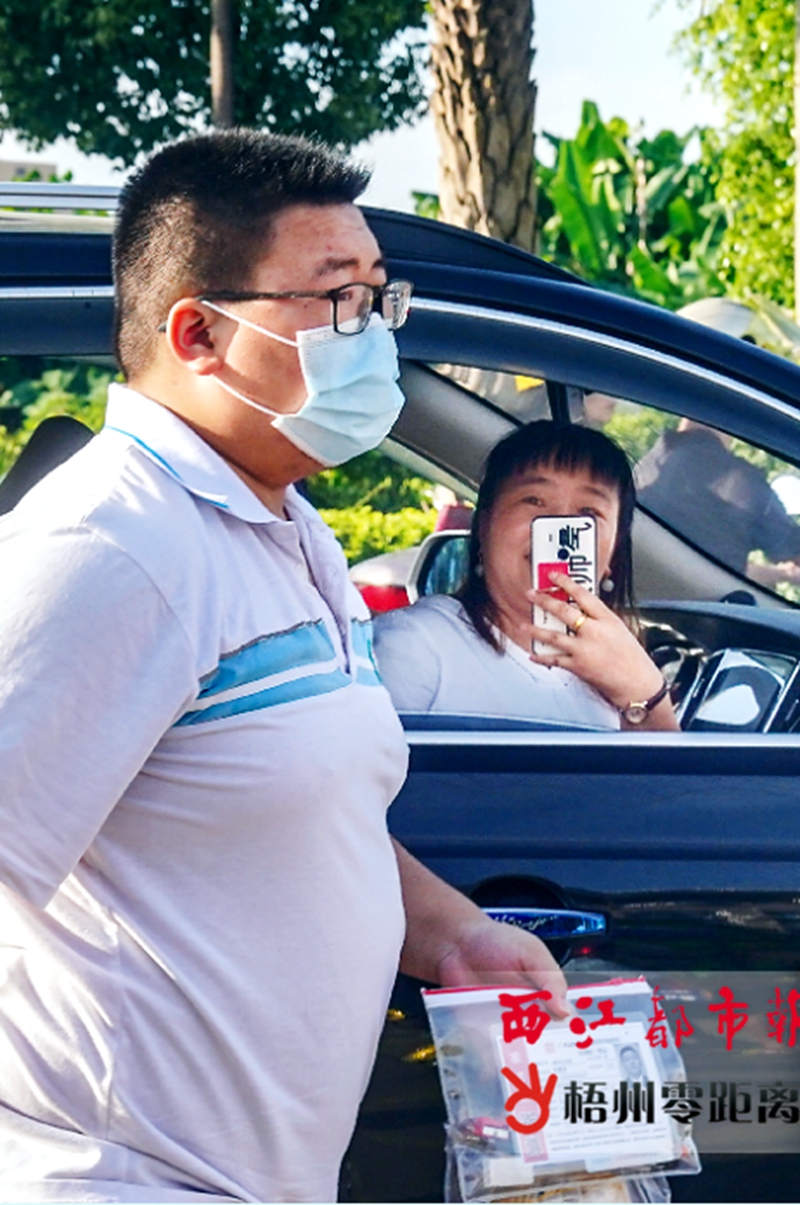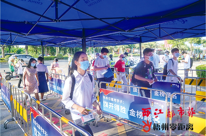 梧州零距離網-西江都市報訊(記者 朱元冬)7月7日上午,2020年高考正式開始,全市近2.3萬名考生分別奔赴776個考場參加考試。據梧州市招生考試院統計,今年參加高考的考生中,報考文科綜合考試9816人,報考理科綜合考試13043人。 當天上午7時40分左右,在市第一中學考點門前,從梧州高中開來的高考專車陸續抵達停靠。接著,考生在交警、老師等工作人員的引導下,戴著口罩有序下車,并通過體溫檢測通道進入考點。有的家長還自行將孩子送到市一中考點。考生們有的用手機與家長拍照留念,有的與家長擁抱、擊掌鼓勵自己,消除緊張情緒。“我今天早上6時已經起床做準備,就是為了將孩子準時送到考點。”市民楊女士和女兒擁抱鼓勵后,目送她進入考場。