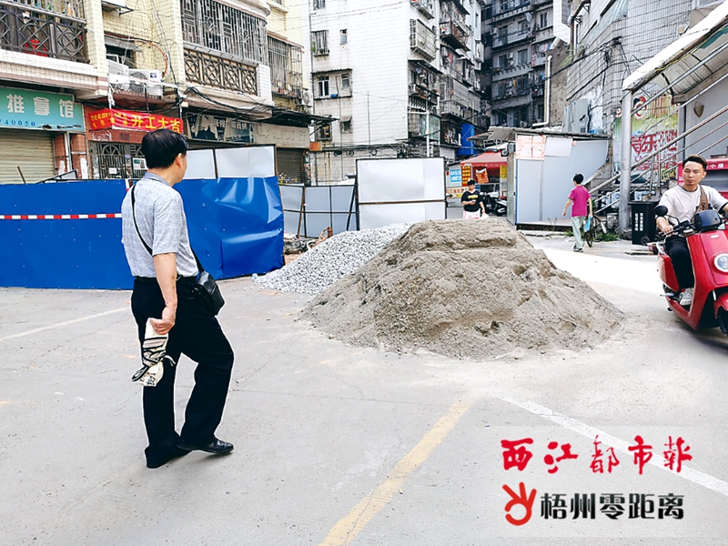 7月8日8時40分許,太陽廣場停車場東側入口被擋板和建筑材料阻隔,車輛不能進入。何鎏 攝