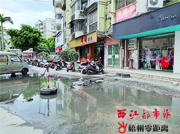 11日16時許,蒼梧縣人民醫院背后路面坑洼積水,影響市容市貌。 |