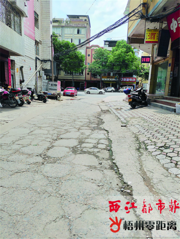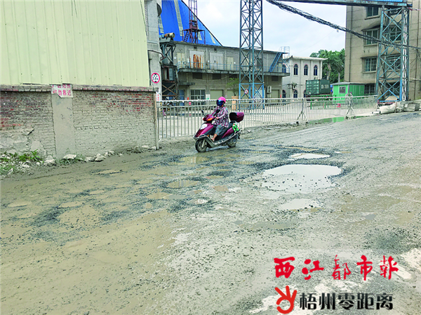 梧州零距離網-西江都市報訊(記者 羅卡妮 張超浩 實習生 蒙淞瑩) 每逢雨天,我市部分道路路面坑洼破損問題就會成為市民集中投訴的熱點,特別是那些長時間無人修復,破損情況越來越嚴重的道路,更讓不少車輛和行人發愁。 7月11日上午,記者走訪了萬秀區多條市政道路及背街小巷,發現在該城區,路面坑洼或積水的情況主要集中在次干道及小街小巷里,但也有個別主干道路況不佳。其中,塘源路路面坑洼的情況隨處可見,個別坑洼的面積甚至達到兩三平方米。更為嚴重的是,在原玻璃廠至橫石角碼頭短短三四百米的路段,竟有20多個大大小小的積水坑,途經該路段的行人及車輛無不小心翼翼。此外,在白云路、富民二路、步埠路、火山路等城市主干道路,也存在多處路面坑洼現象,對過往車輛和行人造成了不少影響。