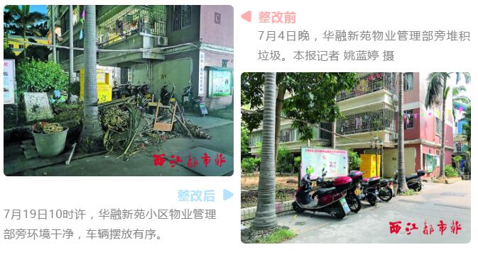相較之下,住宅小區(qū)的整改更有成效一些。如本報(bào)曝光的華融新苑小區(qū)物業(yè)管理部旁堆積成小山的生活垃圾已被清理干凈,記者暗訪發(fā)現(xiàn),如今該處沒有垃圾,且車輛擺放也較為有序。