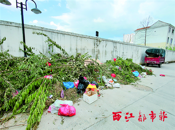 7月5日16時許,紅嶺廉租房小區(qū)3號樓、4號樓附近的圍墻邊上,垃圾隨意堆放。陳凡 攝