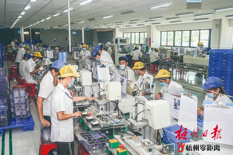 國光梧州產業基地自2月份復工以來多措并舉抓生產、搶進度,實現逆市增長。目前該基地17條生產線已投產,帶動多家大灣區上下游關聯企業入駐,粵桂合作特別試驗區(梧州)以國光梧州產業基地為龍頭的智能電聲產業鏈及產業集群初步形成。