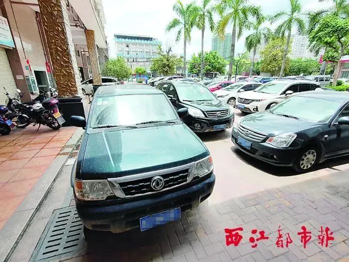 7月6日12時47分,龍圩區政務服務中心前方的小廣場上,許多車輛不按劃線區域停放。陳凡 攝
