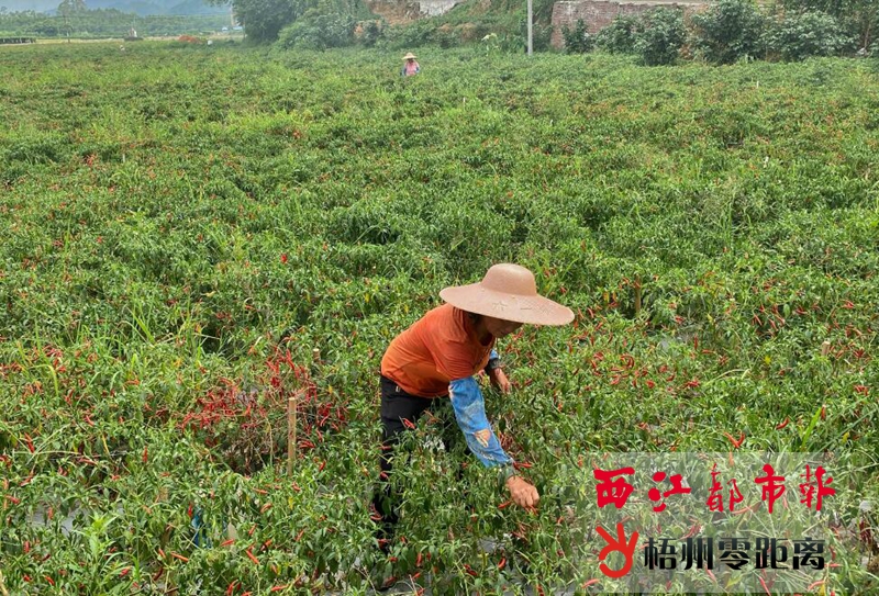 7月20日,萬秀區夏郢鎮鳳凰村,農戶在辣椒田里采摘辣椒。