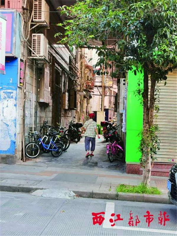7月22日11時30分,大中路富達大廈樓下通道,占用通道的兩輪車明顯減少。何鎏 攝