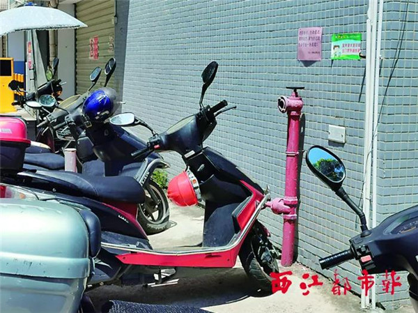 梧州零距離網(wǎng)-西江都市報訊(記者 冼振宇)7月9日,本報曝光了三個城區(qū)部分街巷和住宅小區(qū)消防通道、消火栓周邊空地普遍存在被占用、受堵塞、遭圍蔽等現(xiàn)象。7月22日上午,記者對這些街巷和住宅小區(qū)進行回訪,發(fā)現(xiàn)部分消防通道被社會車輛占道停車的問題得到了整改,但在萬秀區(qū)金龍巷、長洲區(qū)匯客苑小區(qū)及龍圩區(qū)幾個被曝光的小區(qū),占用消防通道停車、堆垃圾雜物的現(xiàn)象沒有改觀。 在萬秀區(qū)太陽廣場停車場西側(cè)小吃巷出入口,原先占用消防疏散通道停放的兩輪車已經(jīng)被清理;大中路富達大廈樓下的通道此前停滿了兩輪車,過道僅容一人通行,如今該通道已基本通暢,只有一兩輛兩輪車靠邊停放。但在金龍巷和工廠二路三和里小巷,居民的兩輪車和生活雜物依然放在狹窄的通道兩邊。在龍骨路香樟園小區(qū),物業(yè)公司在被曝光的消火栓周圍張貼了“生命通道切勿阻擋”“請為自己的生命留出一條通道”等告示,但仍有居民無視告示在周邊停放兩輪車。