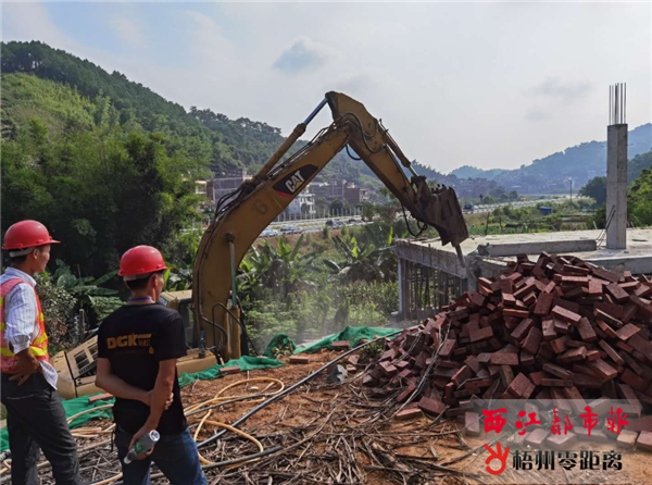 梧州零距離網-西江都市報訊 (記者 朱元冬 通訊員 黎海平) 7月29日,萬秀區政法委與萬秀區相關部門單位組成聯合執法隊,對位于207國道東繞城過境公路龍湖鎮旺步村段沿線的9棟違建房屋進行依法強制拆除。