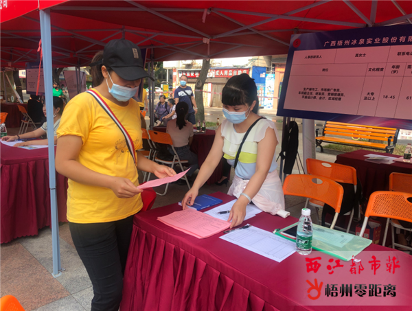 梧州零距離網-西江都市報訊(記者 謝韻 實習生 伍葉娟 通訊員 郭岳蘭) 為了給企業與求職者提供更多面對面交流的機會,7月30日上午,梧州市人社局、市教育局、市總工會、市工商業聯合會在潘塘公園聯合舉辦2020年梧州市民營企業招聘月活動暨農村勞動力轉移就業專場招聘會。本次招聘會共吸引市內32家企業參與,提供260多個工種約3300個崗位。