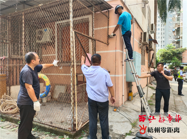 梧州零距離網-西江都市報訊(記者 蒙敏瑩 見習記者 吳小華 通訊員 黃超 鄒文姬) 拆除違建、疏導車輛、規劃停車位……7月30日上午,長洲區大塘街長團隊來到匯客苑小區,繼續開展“執法進小區”整治行動。今年以來,為進一步強化轄區消防通道管理,長洲區已多次組織城區相關職能部門,對轄區部分居民小區持續開展“執法進小區”整治行動,取得一定成效。 當天上午,大塘街長團隊和執法人員到達現場后,在匯客苑小區居民樓違搭亂蓋物周邊拉起警戒線,并依法對鐵柵欄門、鐵皮棚等違搭亂蓋物進行拆除。與此同時,也有部分居民見狀自行拆除違搭亂蓋物。大塘街長團隊當天除了對該小區內20多處違搭亂蓋物進行拆除外,還將合理利用小區空間,在小區內規劃停車位,做到疏堵結合。