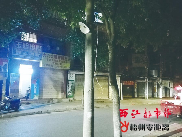 8月8日22時(shí)許,長洲區(qū)精通盛世花園A區(qū)對開的道路上,有三盞路燈不亮。吳小華 攝 在萬秀區(qū)新興一路花樣年華餐廳旁的小巷里,一家便民自助洗車站旁有一盞不亮的路燈,讓原本就比較昏暗的小巷光線更不足。在新興一路市建筑設(shè)計(jì)院對面的一個(gè)巷口,一根燈柱懸掛的兩個(gè)長方體中式路燈都沒有點(diǎn)亮。附近的新興苑小區(qū),從門口到里邊最深處,像這種完全不亮的中式路燈不少于3組。在西堤二路與新華路交界處附近的圍擋上方,數(shù)十盞路燈一字排開,但遺憾的是約有20盞燈沒有點(diǎn)亮,使得該處人行道能見度降低,夜間景觀也遜色不少。另外,在蝶山二路潘塘公園對開的人行道地面上,不亮的景觀小路燈仿佛就是公園外圍欄桿光亮景觀帶上的“傷疤”。還有工廠一路金圭商貿(mào)行附近的一盞路燈,雖然點(diǎn)亮了,但是燈罩和燈泡分離,燈泡疑似吊在樹枝上。在龍骨路一帶,一個(gè)破損無燈泡的燈罩掛在一根桿子上,兩根電線纏繞著吊在半空。