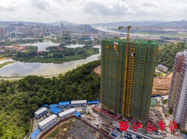 梧州零距離網-西江都市報訊(記者 吳艷虹 通訊員 蒙燕霞)8月7日,記者從梧州市城投公司了解到,兩龍片區棚戶區改造項目安置點4工程二期封頂。該工程為政府保障性住房項目,安置戶數達232戶,預計2021年春節前可交付使用。
