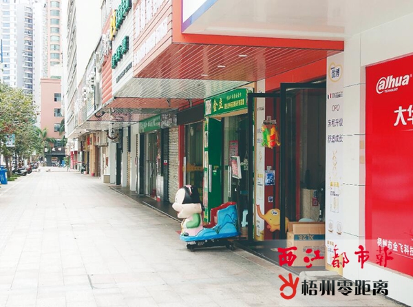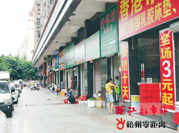 梧州零距離網-西江都市報訊(記者 黃丹婷) 沿街商鋪占道經營,一直以來都是城市管理的頑疾,不僅影響市容市貌,還阻礙交通出行。8月12日,記者走訪了市內的新興珠寶路、迎賓路、銀湖北路、銀湖南路和中山路等5條商業街,發現大部分沿街店鋪都能做到經營規范,但仍有個別店鋪存在占道經營的情況,還有一些店鋪門前停放著正在充電的電動車,霸占了人行道。