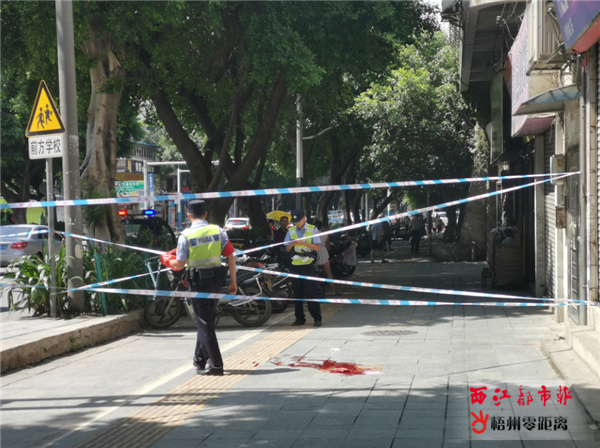 梧州零距離網-西江都市報訊(記者 陳雨燕) 8月18日上午,萬秀區富民一路發生一起高空墜物事件,一名中年婦女在一棟住宅樓旁的人行道上,被一塊墜落的鐵質三角架砸中頭部倒地不起,隨后被緊急送院救治。 當天10時45分,記者接報后趕到現場,警方已在事發路段拉起警戒線保護現場,傷者已被送往附近醫院,有民警在現場調查處置。記者見到警戒線內的人行道地面上遺留大片血跡,還有一塊鐵質三角架。