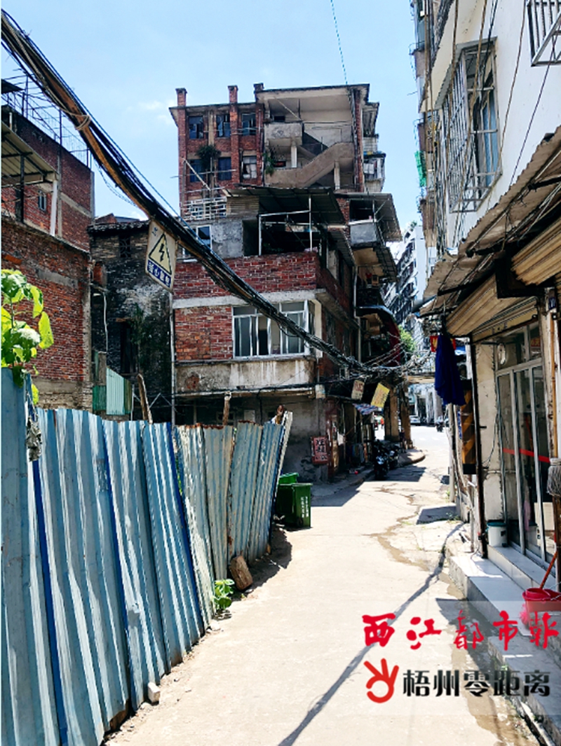 7月23日14時30分,在萬秀區東中路馬王街,此處的居民樓間仍然存在亂拉的電線。鐘慧 攝