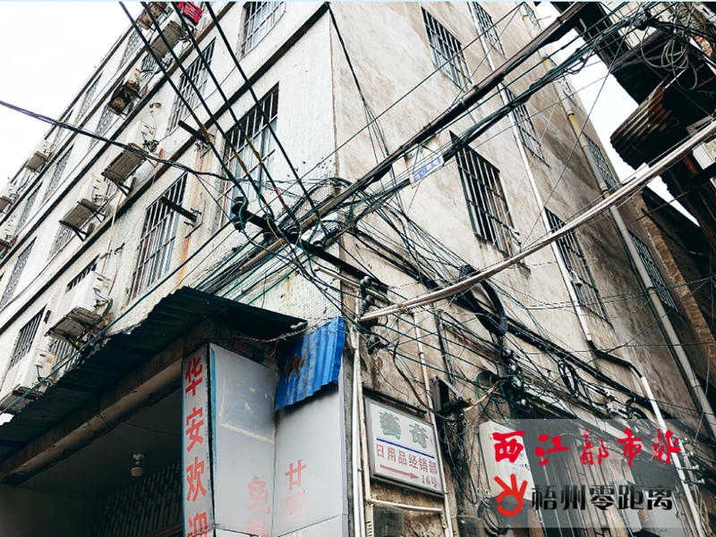 梧州零距離網-西江都市報訊 7月10日,本報對我市萬秀、長洲、龍圩三個城區的電線亂拉亂象進行了曝光。7月23日,記者在對被曝光地點進行回訪時發現,部分地方電線亂拉的情況已得到初步整改,但線纜橫空的問題在一些地方依然存在,相關情況在一些背街小巷、老舊住宅密集區域尤為明顯。8月19日,記者再次對在第一次回訪中整改不完善的地方進行第二次回訪,了解最新的情況。 8月19日上午,記者來到萬秀區,對東中路馬王街、東中路萬壽宮市場附近的道路進行第二次回訪。其間,記者發現,這里的居民區及樓房密集社區“線亂拉”情況依舊:在東中路馬王街的居民樓間,還能看到雜亂的電線;在東中路萬壽宮市場附近,成捆的線纜距離地面很近,對附近居民及行人造成了一定的安全隱患。對比第一次回訪的情況,這兩處地方“線亂拉”的情況沒有得到整改。據了解,這兩處“線亂拉”問題的責任社區為萬秀區城北街道辦事處北山社區,責任單位則分別是中國聯通梧州分公司、中國電信梧州分公司。