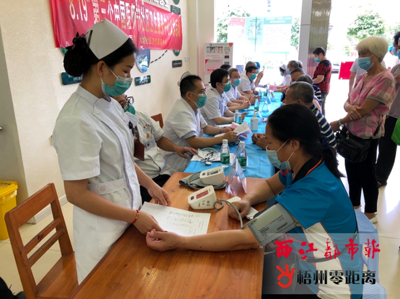 梧州零距離網(wǎng)-西江都市報(bào)訊(記者 謝韻 通訊員 黃舒捷 陳思晴)今年8月19日是第三個(gè)中國(guó)醫(yī)師節(jié)。為大力弘揚(yáng)“敬佑生命、救死扶傷、甘于奉獻(xiàn)、大愛無疆”的崇高精神,當(dāng)天上午,市人民醫(yī)院、市工人醫(yī)院、市中心血站等醫(yī)療機(jī)構(gòu)到社區(qū)開展了義診活動(dòng)。 上午9時(shí)許,在大塘街道社區(qū)衛(wèi)生服務(wù)中心一層,來自市人民醫(yī)院的專家醫(yī)生用桌子拼成臨時(shí)的診臺(tái),以一對(duì)一的方式,或?yàn)槭忻窳垦獕?,或針?duì)大家的疑問答疑解惑(下圖,謝韻攝)。自2017年國(guó)家設(shè)立中國(guó)醫(yī)師節(jié)后,該院每年都會(huì)在中國(guó)醫(yī)師節(jié)當(dāng)天到街道社區(qū)開展義診服務(wù)。市人民醫(yī)院副院長(zhǎng)姜洪表示,中國(guó)醫(yī)師節(jié)的設(shè)立,是社會(huì)對(duì)醫(yī)務(wù)工作者辛勤付出的肯定,在促進(jìn)醫(yī)生與群眾交流、增進(jìn)群眾對(duì)醫(yī)生的了解等方面也有積極作用。因此,在這個(gè)節(jié)日里,醫(yī)務(wù)工作者更應(yīng)用心為群眾服務(wù),回饋社會(huì)。