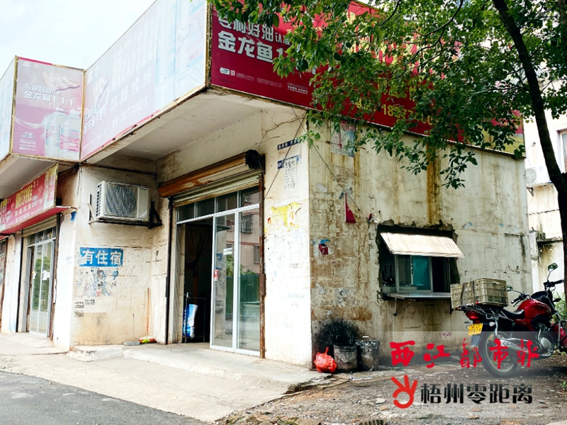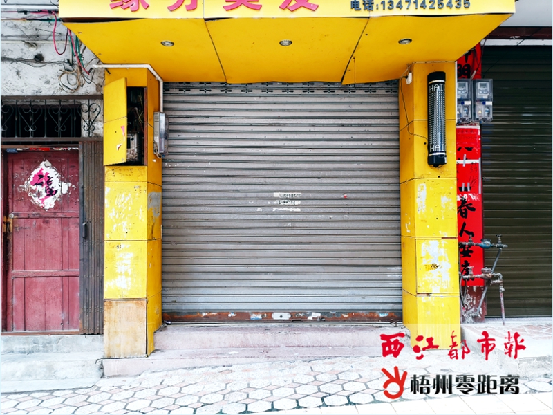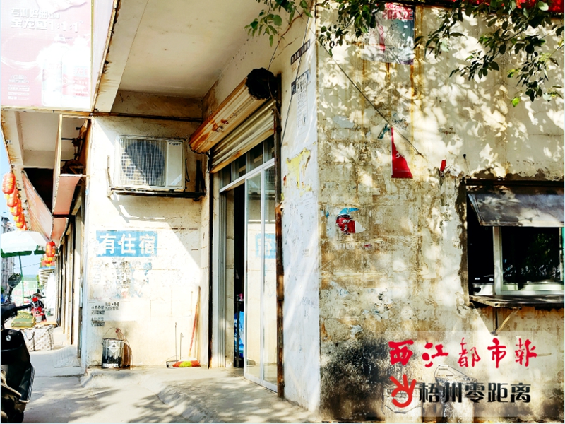 7月24日8時20分,梧州火車站附近商鋪的外墻上仍張貼有小廣告。陳凡 攝