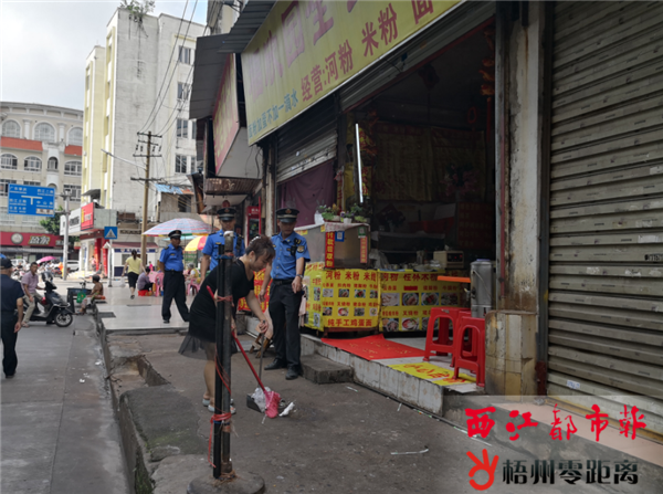 梧州零距離網-西江都市報訊(記者 吳艷虹 通訊員 陳思夏)近段時間,萬秀區城市管理執法大隊針對石鼓路、大東下路沿街商鋪“門前三包”落實情況開展整治工作,對落實不到位的店鋪依法進行現場處罰。