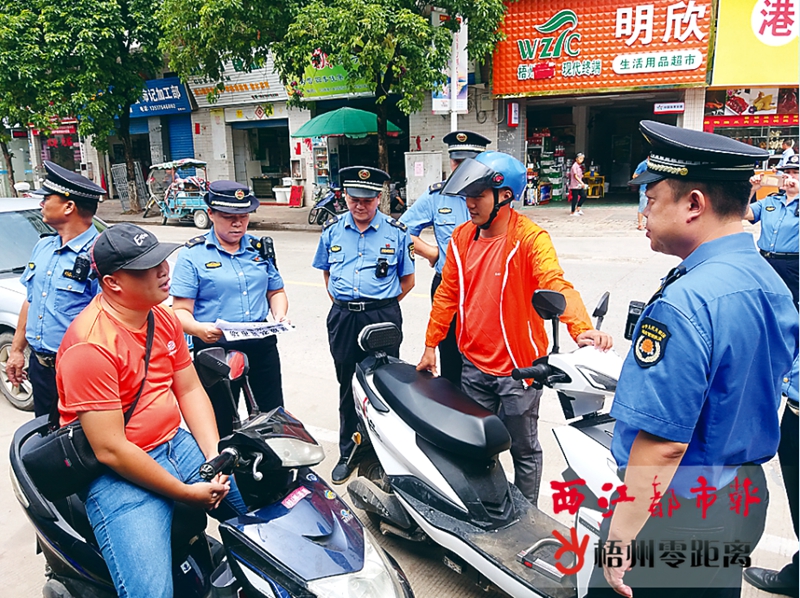 9月10日,城管執法人員在龍圩區龍湖路查獲一起亂貼小廣告案件。執法人員要求違規行為人現場清理其張貼的小廣告,并依法對其進行處罰。據悉,近期,市城管部門開展專項整治行動,重點查處小廣告亂貼亂派行為。 (記者 吳艷虹 攝)