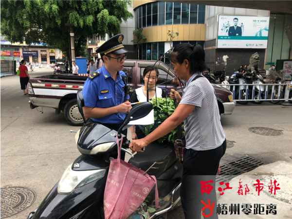 “阿姨,我們發現你已經不是第一次在此亂擺賣了。如果再有這樣的行為,我們將按照有關條例對你進行處罰。”9月14日上午,一名在西江四橋北岸引橋橋底擺賣蔬菜的阿姨,被角嘴街道“街長制”團隊隊員抓了個現行。而一名在引橋橋底賣魚的男子,則被“街長制”團隊暫扣了電子秤。當天,在角嘴街道“街長制”團隊的組織下,民警、城管執法人員、街道社區工作人員等10多人組成聯合執法行動隊,在西江四橋北岸引橋橋底及周邊開展整治行動。行動中,工作人員對亂停車輛、亂擺賣、占道經營的相關責任人進行勸導教育,并要求商販和商鋪經營者簽署《規范經營承諾書》,規范經營行為。