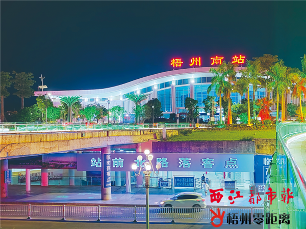 9月15日,梧州南站站前北路落客點在夜景燈光的點綴下標識顯示更清晰。
