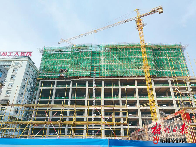 9月21日,市工人醫院住院門診綜合樓項目已完成建筑主體主樓地上第11層樓板混凝土澆筑工作,施工隊伍正進行主樓第12層和裙樓地層的模板安裝工作。