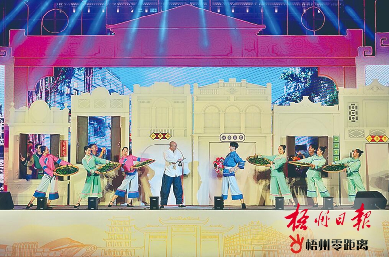9月22日,在大型舞臺劇《梧州記憶》中,《花好月圓美福地》展現了老梧州的熱鬧街景。記者 陳凡 攝