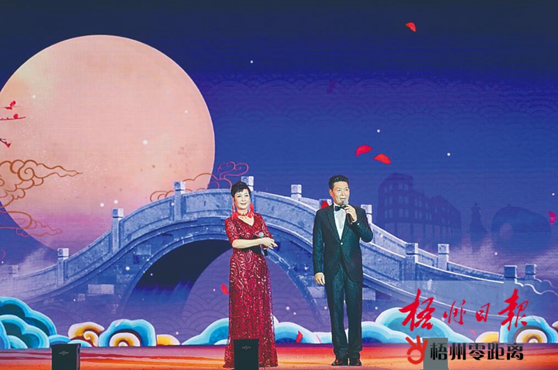 9月22日,在2020年“樂游兩廣、美好新體驗”主題活動啟動儀式暨第五屆廣西嶺南風情文化旅游周開幕式上演的大型舞臺劇《梧州記憶》中,歐凱明和梁素梅表演粵劇選段《七夕盟誓》。 記者 陳凡 攝