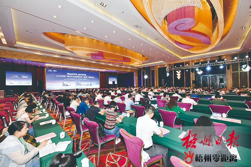 9月22日,“粵桂文旅互聯、攜手灣區共贏”2020年兩廣城市文化和旅游合作(梧州)聯席會議在江濱國際大酒店舉行。 記者 李鴻榮 攝 來自欽州市文化廣電體育和旅游局的嘉賓何文賓在仔細聆聽了會議上兩省區旅游文化界專業人士的交流后表示,前幾年欽州和梧州之間交通不便,旅游文化方面的交流較少,如今隨著區內多個城市高鐵線路開通,欽州到梧州僅三小時直達,因此欽州旅游業界也在想辦法開拓梧州市場。 “我們一說起去梧州旅游,我們的游客就會說,想品嘗冰泉豆漿、紙包雞等廣西名小吃?!焙挝馁e說,用梧州美食打開旅游市場是他們推介梧州旅游的第一步,還有欽州坭興陶和梧州六堡茶正在進行文旅產品方面的合作,兩地將逐步探討文旅結合的深度合作。 嶺南文化同根同源盼共振 9月22日晚,“樂游兩廣、美好新體驗”主題活動暨第五屆廣西嶺南風情文化旅游周開幕式在市政廣場舉行,精彩的演出讓嘉賓、游客和廣大市民留下深刻印象。參加該活動的嘉賓惠州市旅游協會副會長王歡對大型舞臺劇《梧州記憶》贊不絕口,《梧州記憶》把粵劇、騎樓、采茶、六堡茶融合貫穿,兩位梅花獎粵劇大師歐凱明和梁素梅的獻演,讓人領略到粵劇文化藝術的魅力。