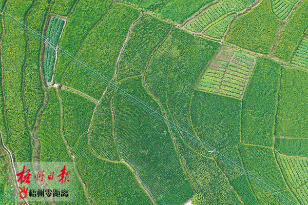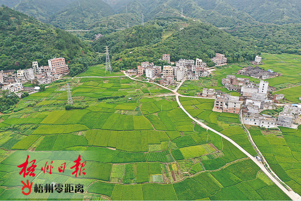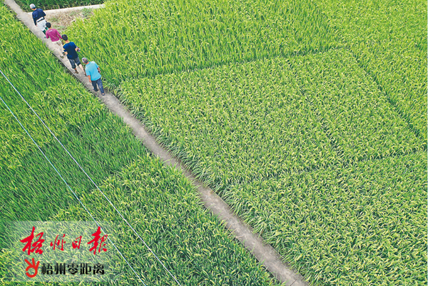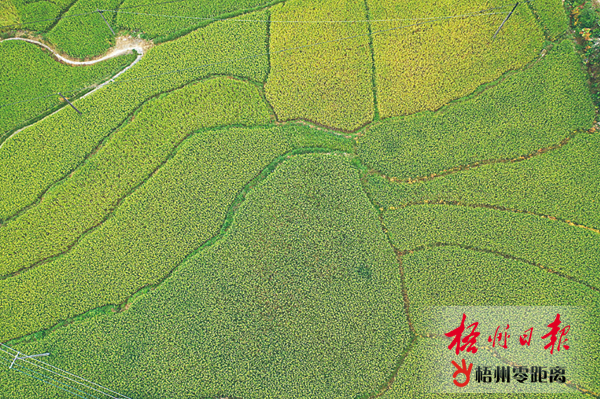 10月8日,正在抽穗揚花的長洲區倒水鎮富萬村水稻與種植蔬菜的菜畦地,相映成趣。