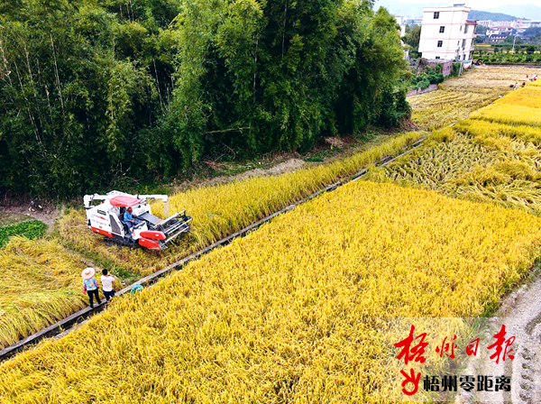 10月24日,在萬秀區夏郢鎮鳳凰村,收割機在田間忙碌收割晚稻。梧州日報記者 何鎏 攝