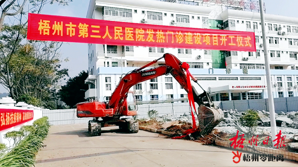 梧州零距離網(wǎng)-梧州日報訊 11月1日上午10時,市第三人民醫(yī)院發(fā)熱門診建設項目開工建設。伴隨著挖掘機“第一挖”工作的開始,施工團隊正式入場進行地基開挖、樁基礎施工工作。項目主體工程計劃用時一個月,擬于11月30日完工交付使用。