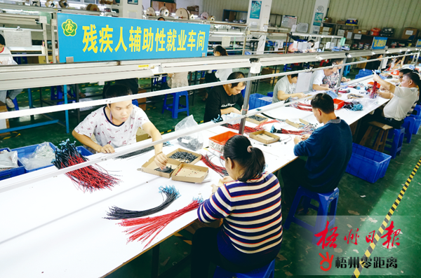 特訊電子有限公司開設殘疾人輔助性就業車間。 覃波 攝 助殘就業促增收 “我剛進入公司務工時,每月收入2300元,現在每月收入近6000元。”近日,岑溪市大業鎮古萬村化魯自然村四聯組4級肢體殘疾、現年33歲的祝慶新,含著激動的熱淚說出上述的話。他得到岑溪市殘聯的介紹,到位于筋竹鎮新聯村的岑溪市澳利電子電器有限公司務工,在家門口實現了就業,收入也不錯。 祝慶新是一名肢體殘疾人,原有一個幸福美滿的家庭。天有不測風云,他的父親于2012年因重病離世,母親因此患上精神病而離家出走,至今下落不明。2015年,祝慶新戶被認定為建檔立卡貧困戶。岑溪市殘聯伸出援手,積極推薦祝慶新到岑溪市澳利電子電器公司就業。隨著祝慶新的收入不斷增加,逐步走上脫貧致富的道路,他戶于2017年順利脫貧。 像祝慶新一樣,在岑溪市澳利電子電器有限公司實現就業創收的,還有一批殘疾人,他們得到同樣的幫助和關愛。 岑溪市澳利電子電器有限公司以壓延加工銅桿及銷售為主,生產銷量低電感、低噪音電線電纜及自營和代理商品進出口業務,年產值達3億多元。據企業負責人謝常華介紹,目前,公司有員工79人,其中殘疾人達50人。 岑溪市澳利電子電器有限公司是岑溪市實現殘疾人就業創收的一個重要基地,也是岑溪市積極實施集中與輔助相融合,陽光助殘就業促增收的一個縮影。 據了解,岑溪市目前持有殘疾人證19470人,其中正處于就業年齡段的殘疾人達9936人。但是,這些就業年齡段中的殘疾人包含有重度殘疾人和精神、智力和多重等不同類別的殘疾人,這些殘疾人因嚴重缺失勞動能力而難以實現就業。 “兩輪齊驅”同步轉 近年來,岑溪市殘聯根據上級抓“六?!贝佟傲€”的指示精神,急殘疾人所急,想殘疾人所想,把實現殘疾人勞動就業創收擺在突出的重要位置上來抓,創造性地開展與相關企業對接工作,實施集中性就業和輔導性就業相結合的策略,做到“兩輪齊驅”同步轉,特別是亮出新舉措,挖掘愛心企業,扶持和幫助各類企業、殘疾人托養服務機構、社會福利服務機構、職業康復機構等單位中附設開展輔助性就業的庇護工場或車間,通過宣傳、發動、協調、鼓勵其與智力、精神和重度肢體殘疾人簽訂從事全日制工作的勞動合同,支付不低于當地最低工資標準的工資并為其購買社會養老保險。幫助有就業意愿但難以進入競爭性勞動力市場的就業困難殘疾人實現就業,變輔之以“魚”為輔之以“漁”,實現脫貧致富奔小康,有力地助推岑溪市決戰決勝脫貧攻堅打下堅實的基礎。 近年來,岑溪市殘聯為把殘疾人就業工作抓細抓實抓出成效,一直與澳利電子電器有限公司緊密合作,并協調解決企業在生產中遇到的困難和問題,千方百計推進殘疾人集中就業,使該公司務工人員中近70%是殘疾人。 今年上半年,岑溪市殘聯創新工作方法,在岑溪市紫坭工業園區內的特訊電子有限公司建立殘疾人輔助性就業庇護車間,通過進行無障礙設施改造,增購了文娛體育和康復設施,促使殘疾人就業對象簽訂了一年從事全日制工作的勞動合同,實現了就業保障。經過努力和培育,目前特訊電子有限公司200多名職工中殘疾人職工達58人,殘疾人輔助性就業對象達16人。 殘疾人集中性就業和輔助性就業工作深受殘疾人的歡迎和贊揚,“我因車禍變成肢體二級殘疾人,無法實現就業,生活相當困難,在岑溪市殘聯引薦下,我到特訊電子有限公司實現輔助性就業,有工作做有收入。目前,雖然月工資收入只有1700元,但都固定有保底收入,我非常感謝上級黨委政府,特別是殘聯部門給予的幫助和關懷?!贬嗅擎傐砦泊宥墯埣踩藙糁缡钦f。 一分耕耘一分收獲,岑溪市殘聯讓殘疾人實現了集中性就業和輔助性就業,讓殘疾人重新燃起了新的希望,開創了殘疾人實現就業增收的新局面。目前,岑溪市就業年齡段殘疾人已實現就業的人員有4524人,就業率達45.53%,其中集中性就業就有105人,輔助性就業達29人。 (覃波 焦譯瑩) |
